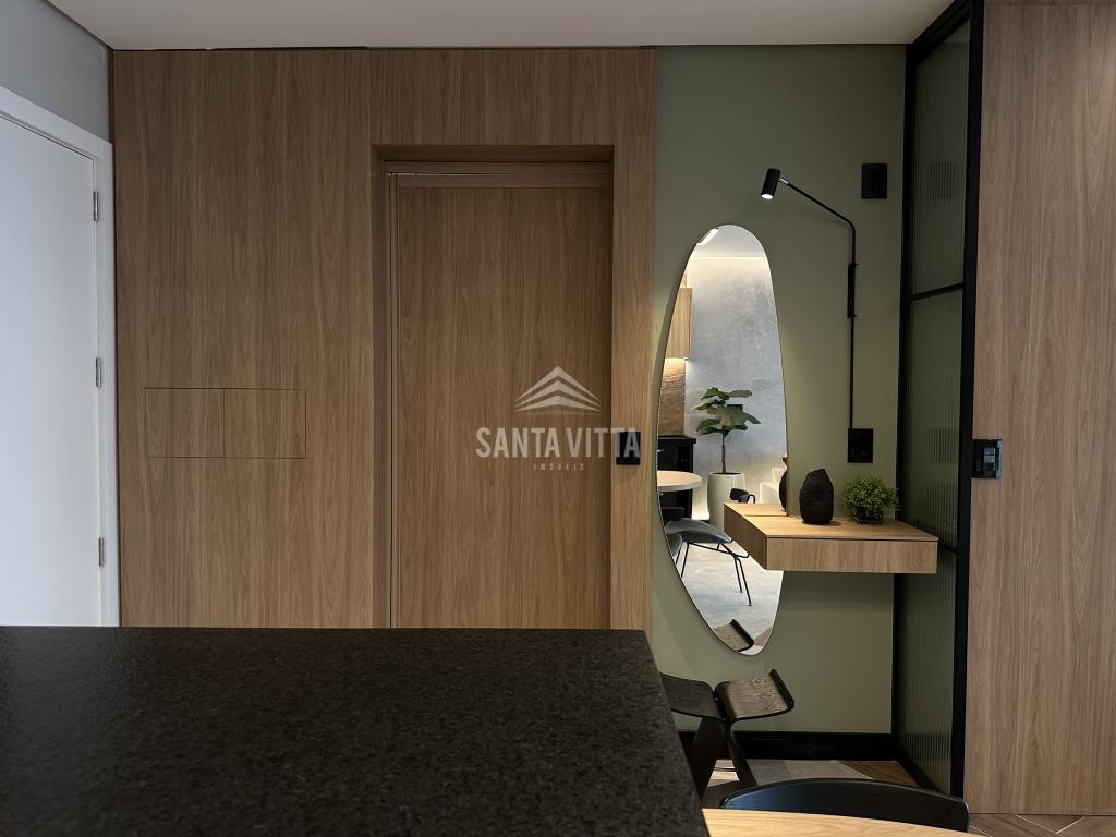 Studio decorado com projeto industrial elegante no Vértice Live.Totalmente mobiliado e decorado;