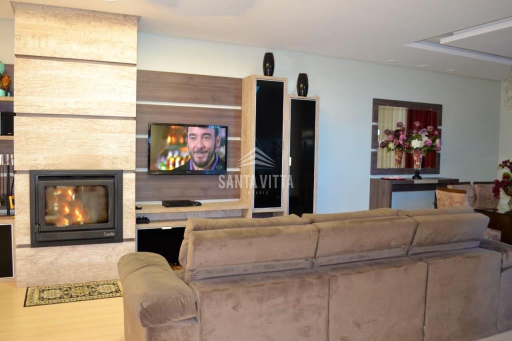 Sala de estar com lareira canadense;