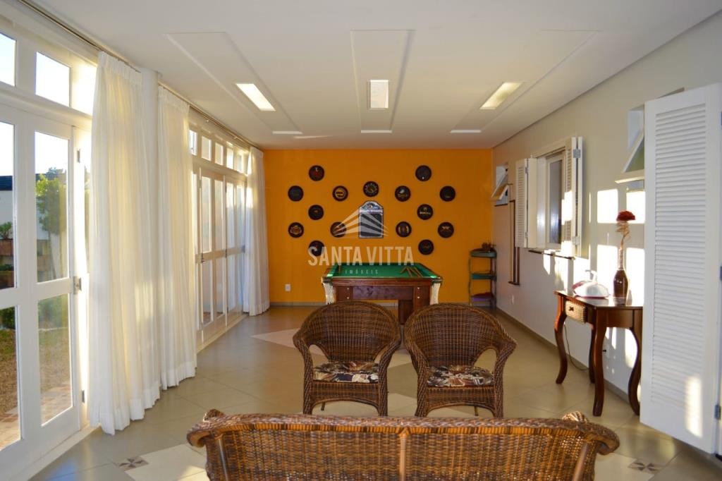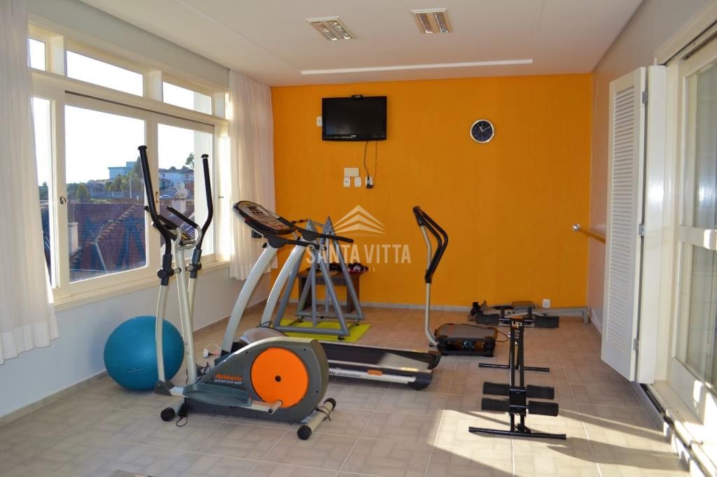 O imóvel conta com alarme com sensor de presença e cerca elétrica, caixa subterrânea para coleta da água da chuva, com capacidade de 10.000 litros, para uso nos sanitários, jardins e limpeza das calçadas, sistema de água quente com painéis solares, serpentinas na lareira e elétrica.