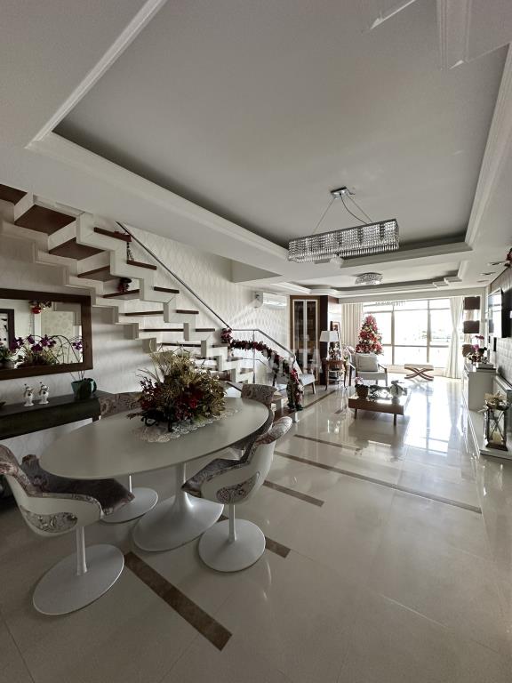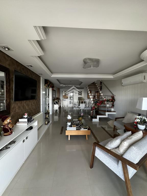 Excelente cobertura duplex para quem gosta de conforto no centro de Farroupilha, com área de uso privativo de 288,99m², primeiro piso sala de estar e jantar conjugados, cozinha, área de serviço com lavanderia e churrasqueira, escritório, suíte com closet, quarto, banheiro, parte superior suíte, sala para tv, com ampla sacada, lavabo e quarto de equipamentos, duas vagas de garagem. O prédio possui salão de festas, academia, brinquedoteca, dois elevadores, portaria 12 horas.